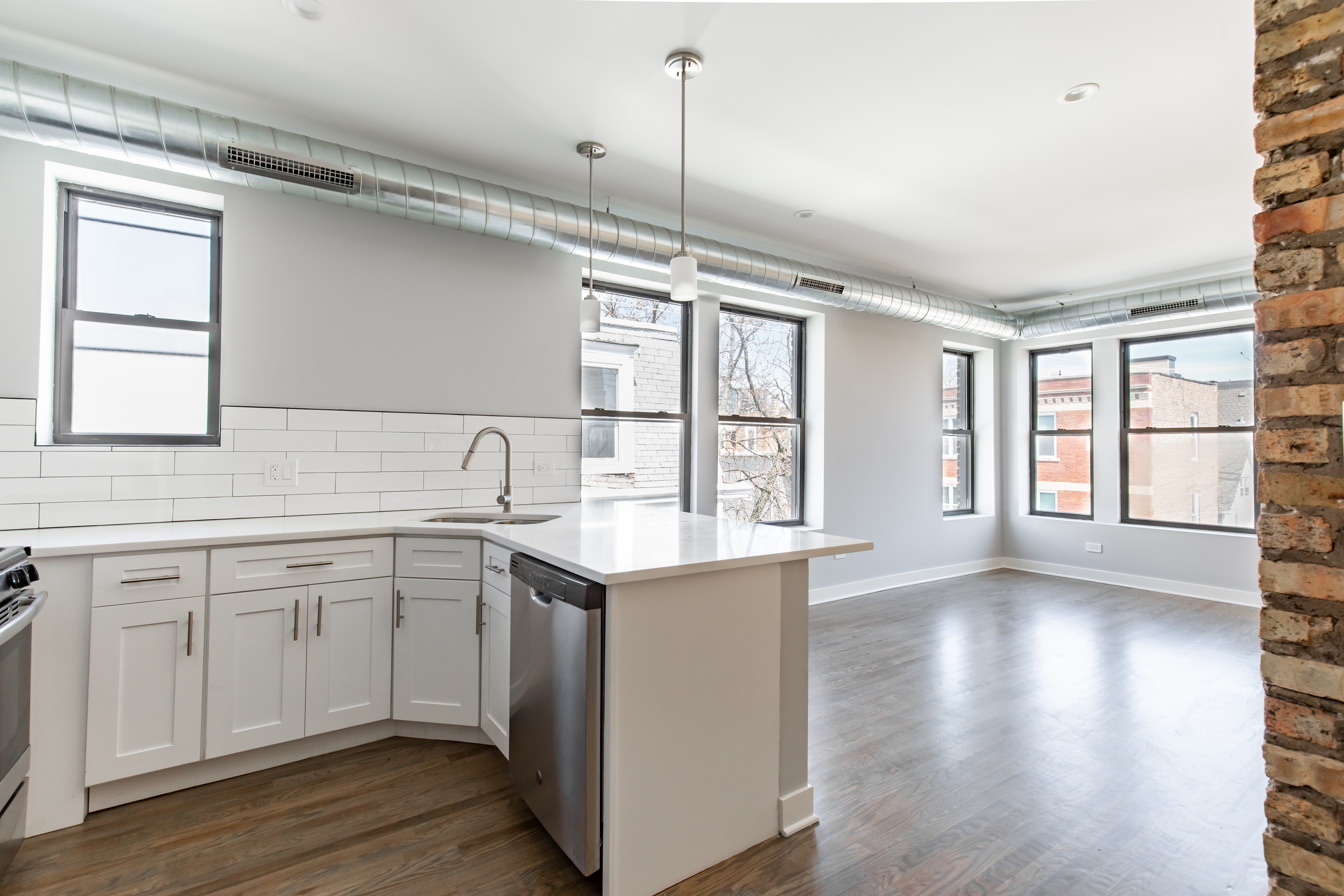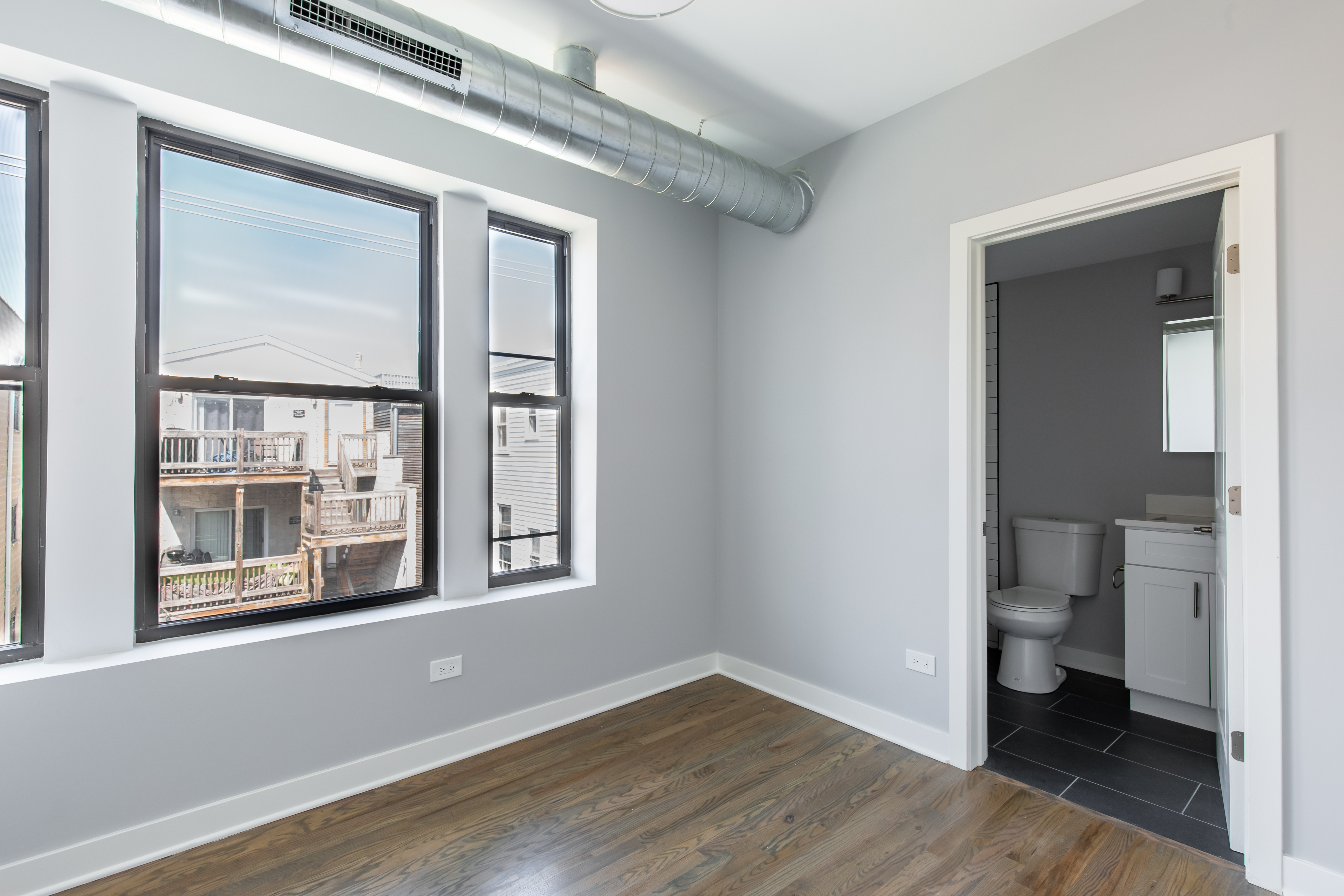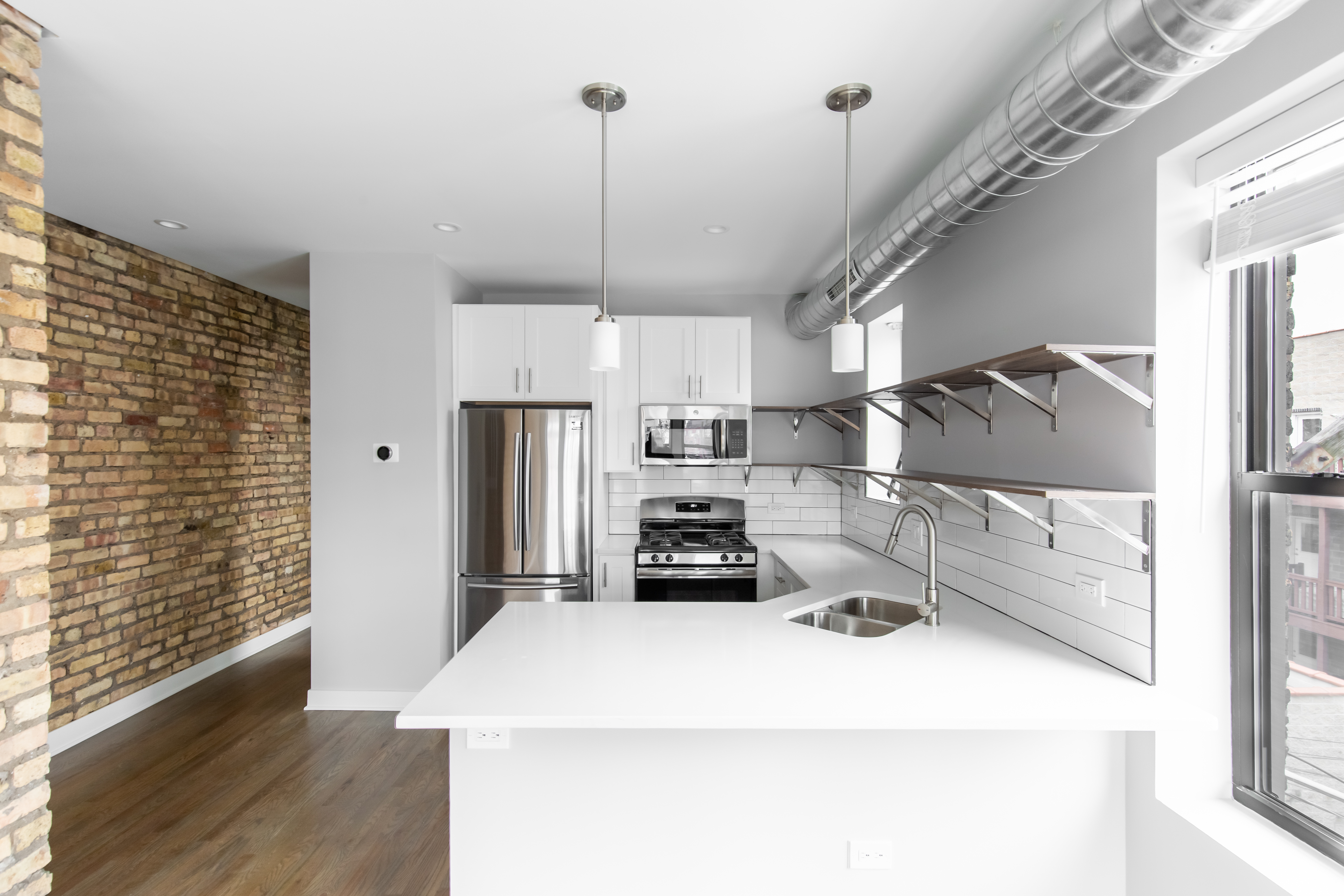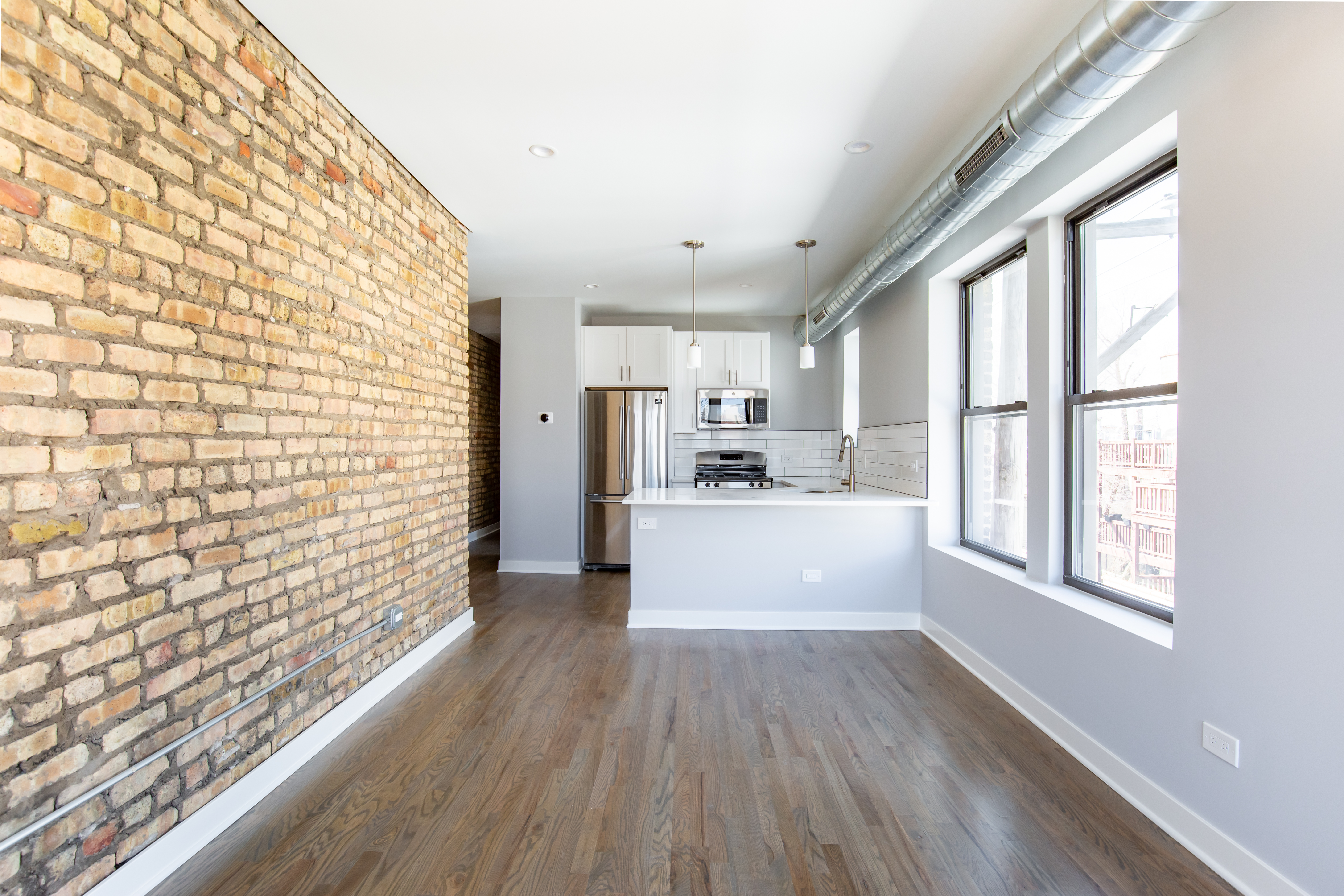 Each apartment was fully renovated with a new kitchen with modern cabinets, SS appliances, quartz countertops, tile backsplash, and a garbage disposal. New bathrooms feature full-tile showers with new tile floors, large vanities, and high-end matte black plumbing fixtures. The apartments would also include in-unit washers/dryers, Nest thermostats, new door entry systems by LATCH, and private outdoor space.