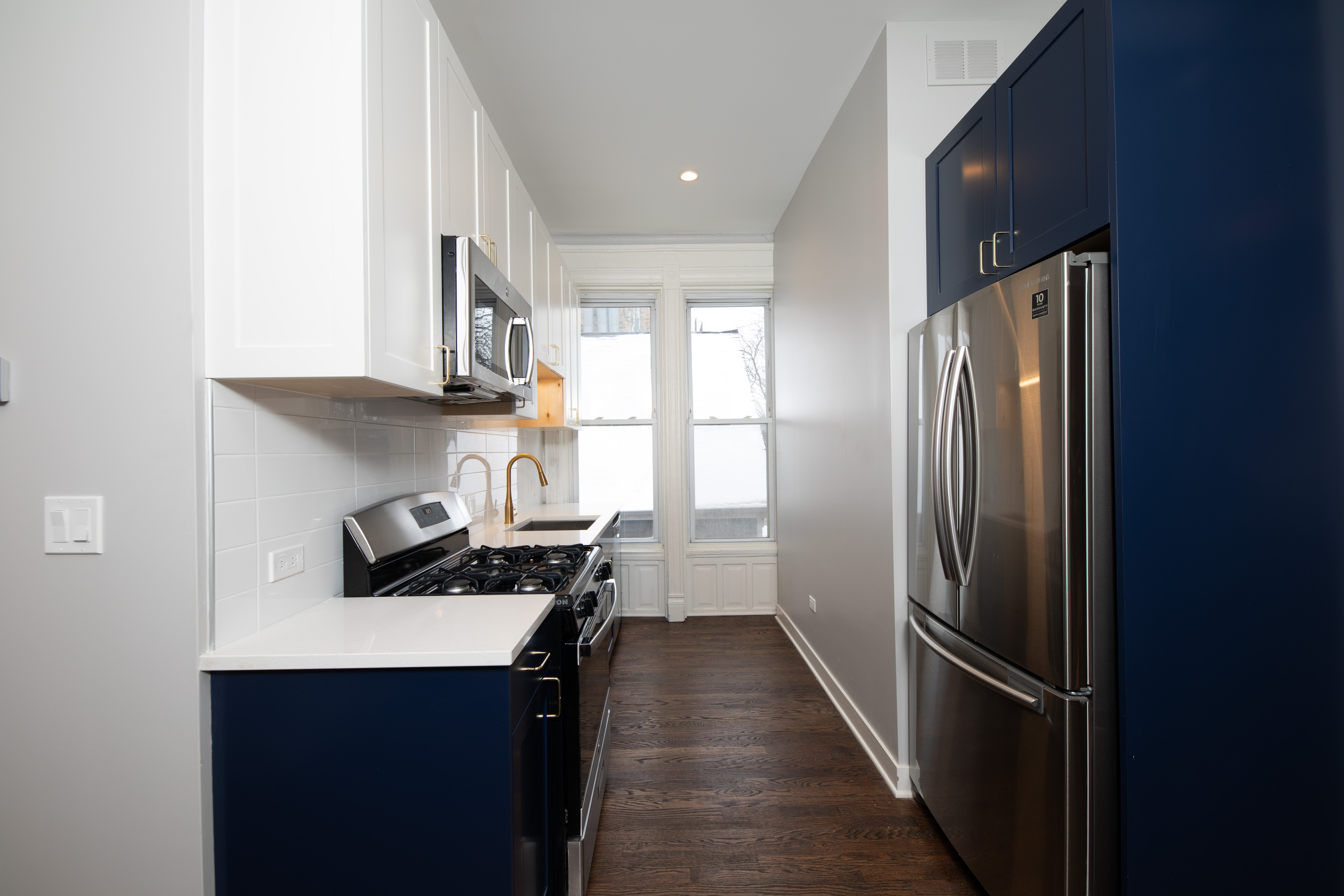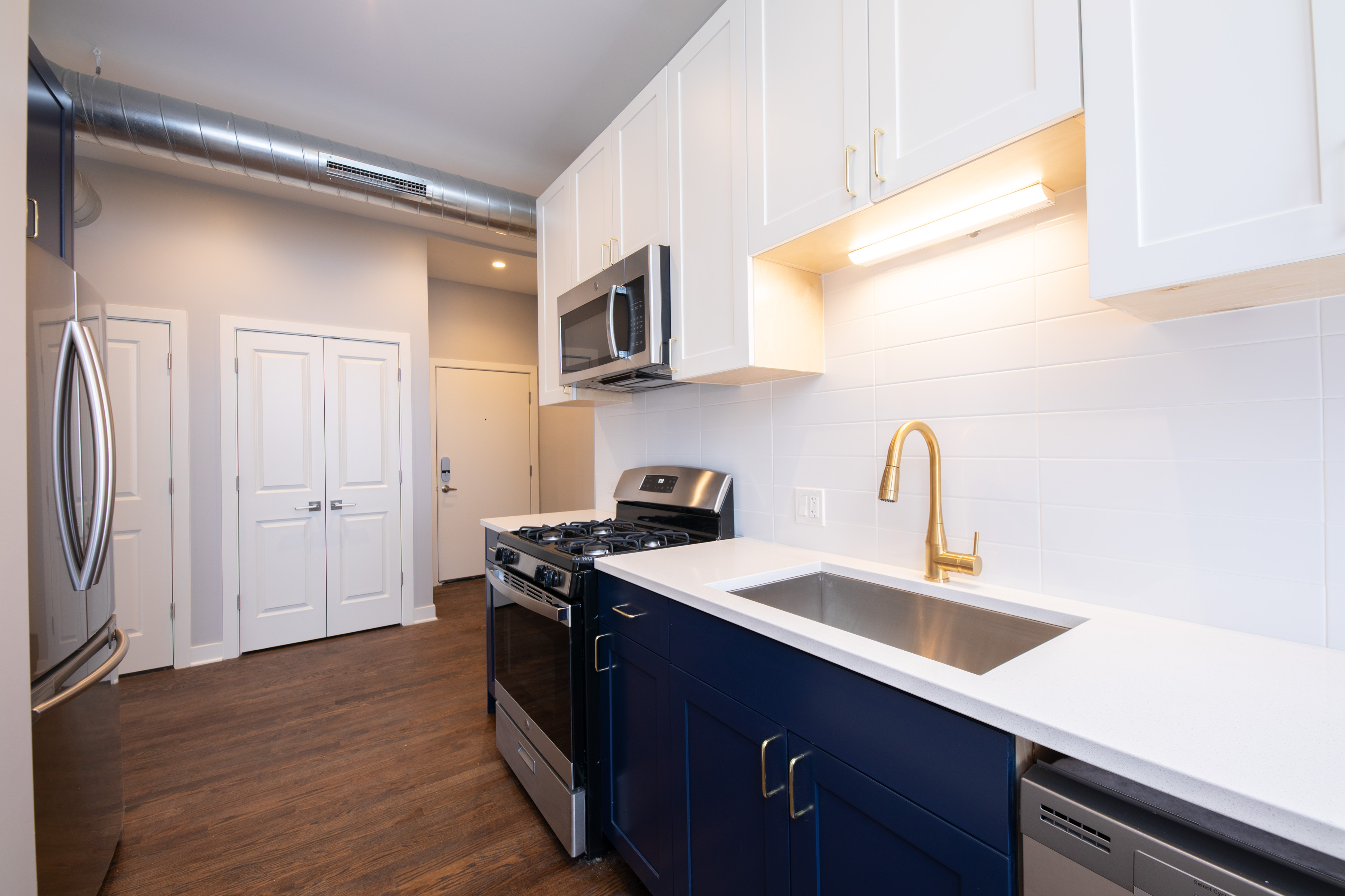 Ownership has converted every apartment into 2 bedroom/2 bathroom units which include A/C and forced-air heating, in-unit washer and dryers, brand new hardwood flooring, new kitchen countertops, GE stainless steel appliances, and other high-end finishes.