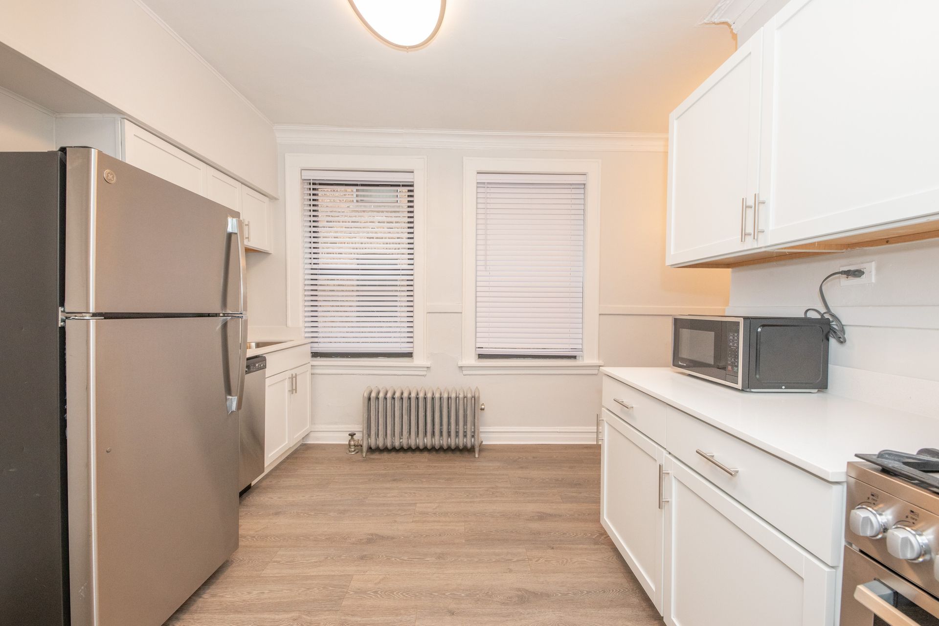 Enjoy the convenience of on-site laundry facilities. With beautiful architectural details, this building radiates character and charm. Plus, you'll be just steps away from vibrant local shops, dining, and the stunning shores of Lake Michigan.